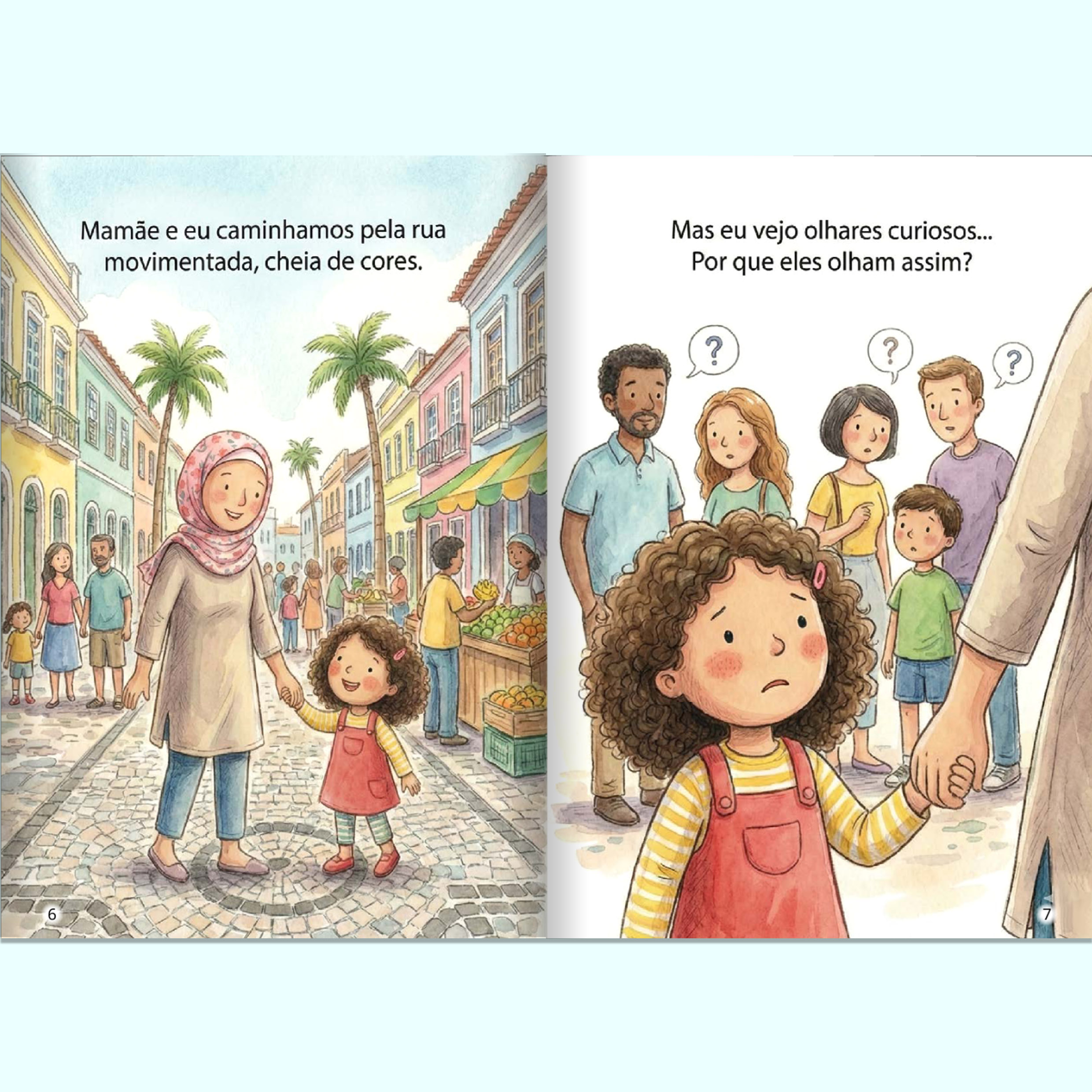 Inspirado em uma história real , uma jornada emocionante pelas ruas de Curitiba, vista pelos olhos de uma criança. Este livro celebra a identidade, o respeito e o amor entre mãe e filha. Por que a mamãe usa o hijab? Através de cores vibrantes e uma narrativa acolhedora, as crianças descobrem que a verdadeira beleza reside na fé e na coragem de ser quem somos.”